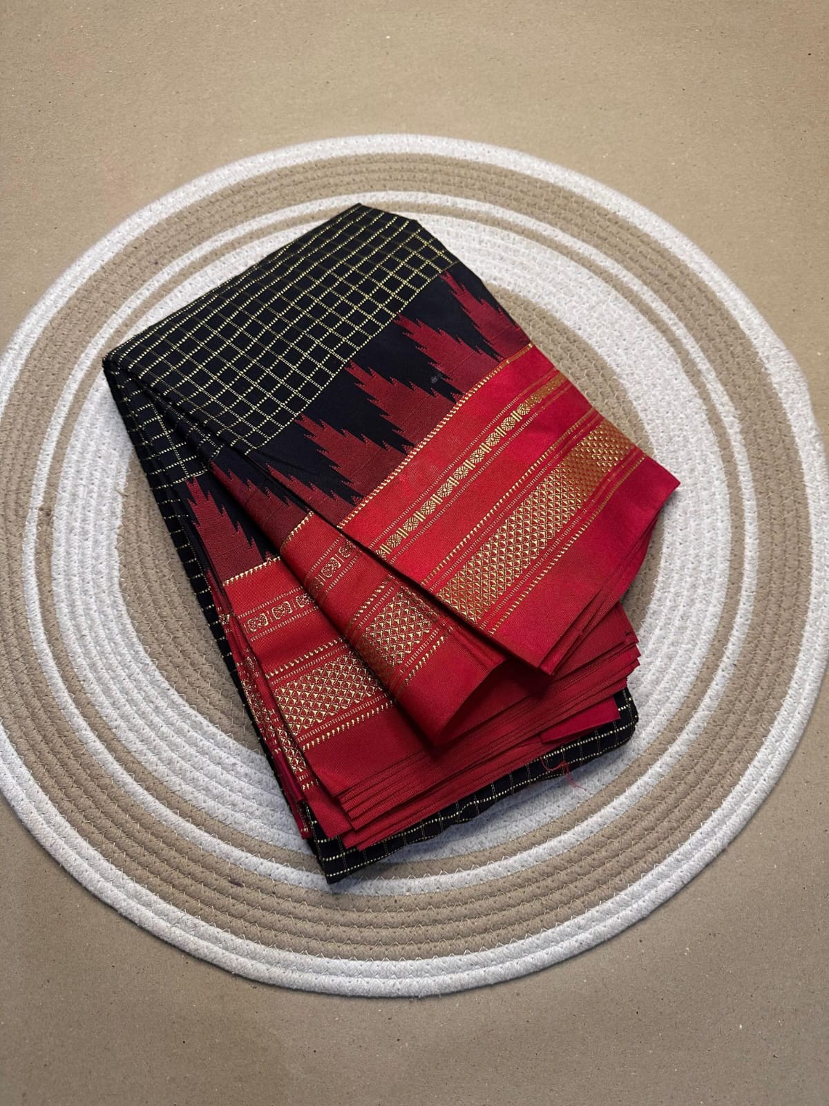 Black And Red Jerry checks, Temple Gadiwalsaree Pallu -Tope pallu