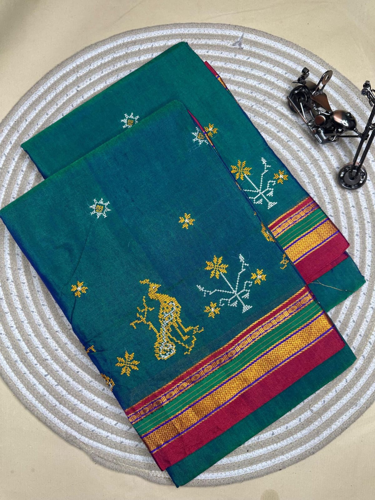 Blue And Maroon ilkal kasuti saree Pallu -patti pallu